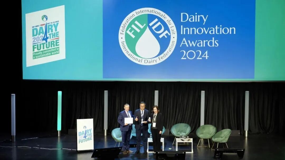 世界乳业峰会由国际乳联举办,是全球规格最高、规模最大的乳品行业盛会,被视为全球乳业发展的风向标,颁发“IDF乳品创新奖”是世界乳业峰会的重要环节。该奖项旨在鼓励乳品行业创新,推动行业落实可持续发展目标,是全球乳业最具影响力和权威性的奖项。伊利“金典乳铁蛋白有机奶”获得“新产品开发创新奖”,该产品历经16年科研积累,打破行业技术壁垒,全球首创乳铁蛋白定向提取保护技术,将常温纯牛奶乳铁蛋白保留率由10%提高到超90%,打造全球首款常温活性乳铁蛋白有机纯牛奶,提升了中国食品科技的全球话语权。