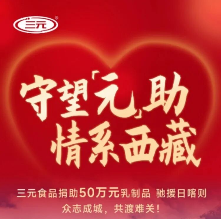 近日,西藏日喀则地区发生地震,牵动了无数人的心。三元食品密切关注灾区情况,及时与相关部门取得联系,详细了解灾区的实际需求,紧急调配并迅速组织起一批物资,用于支持灾区人民的灾后恢复和生活重建。据悉,三元食品此次通过中国妇女发展基金会捐赠的物资,包括5000箱三元纯牛奶以及3000罐婴幼儿配方奶粉及成人奶粉。相关负责人表示,后续公司还将持续关注灾区情况,根据实际需要提供进一步援助,为灾区人民尽快恢复正常生活提供全力支持。